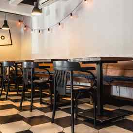 Обстановка в минималистичном стиле, который сейчас чрезвычайно популярен в мире в подобных заведениях, монохром и приятная музыка создают особую атмосферу закусочной.